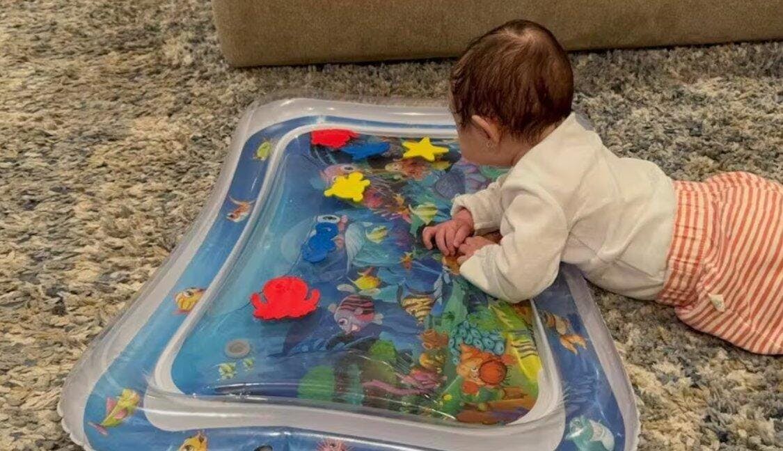 Fill with cool water in summer or warm water in winter—made for year-round tummy time fun!